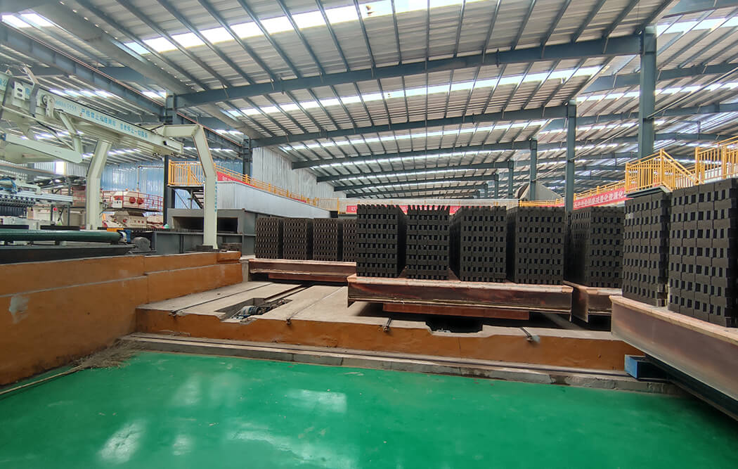 大斷面保證產(chǎn)量,降低行火速度保證質(zhì)量,減少焙燒時(shí)的熱量需求,大大降低產(chǎn)品的綜合能耗,適當(dāng)延長焙燒時(shí) 間,解決黑心磚和成品磚的粘連問題。