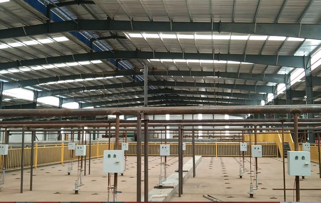 采用大規(guī)模聯(lián)合廠房的建筑形式,形成大面積、大空間聯(lián)合車間,窯體設(shè)計(jì)選用國際大型號鋼材,使窯爐整體 結(jié)構(gòu)牢固耐用,節(jié)省維修成本。施工周期短。達(dá)產(chǎn)達(dá)標(biāo)快, 投資效益高。