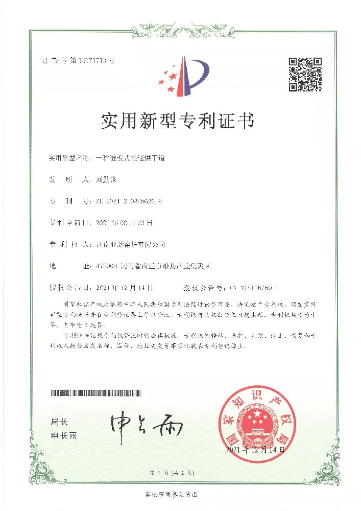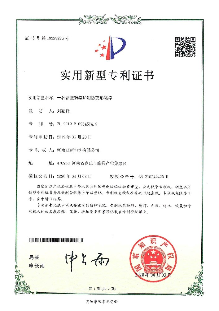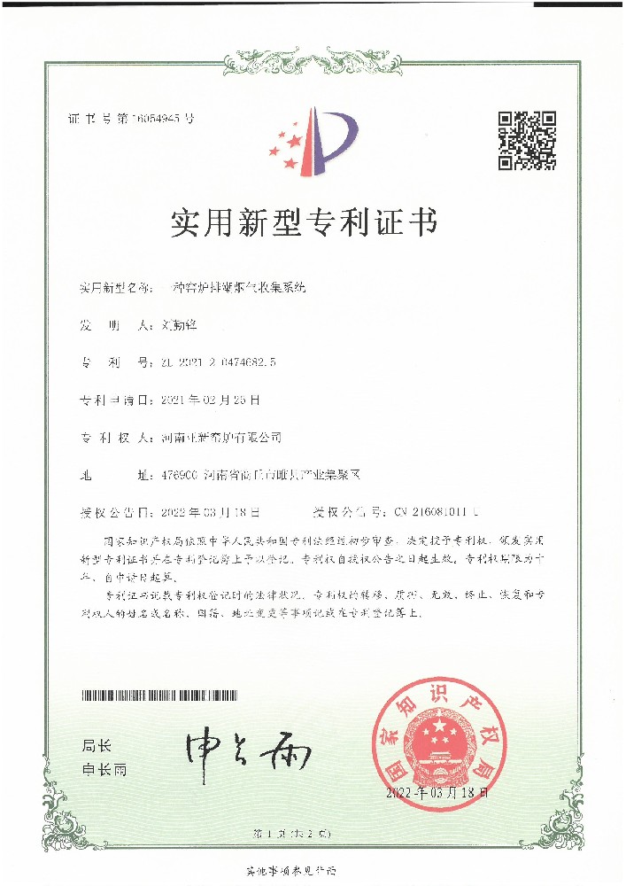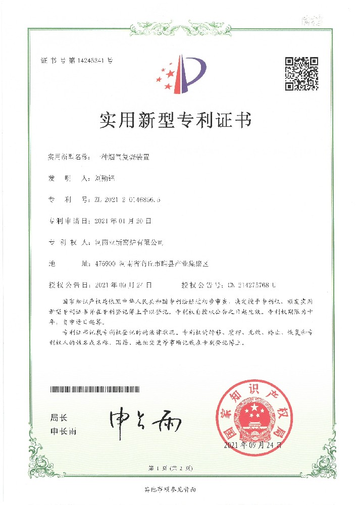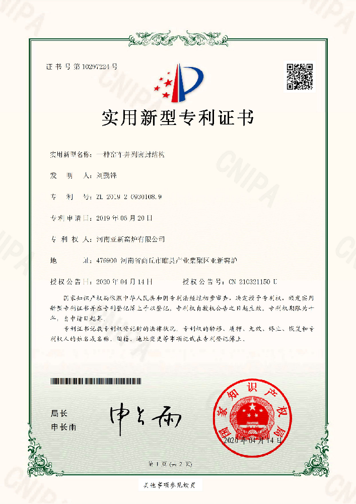 一種新結(jié)構(gòu)旋轉(zhuǎn)移動(dòng)式窯爐——發(fā)明專利證書