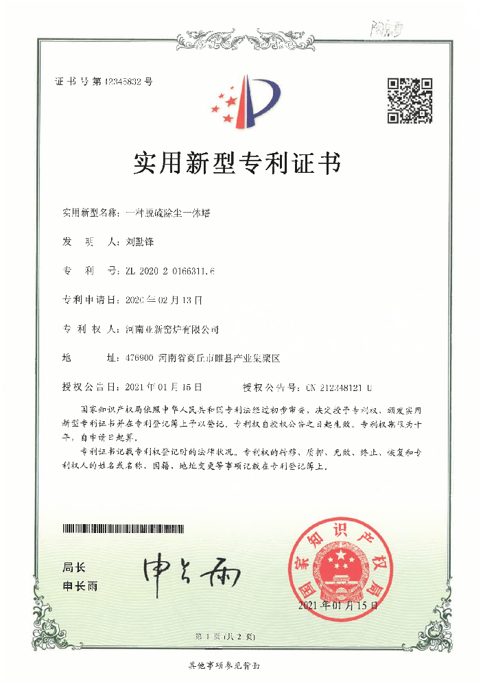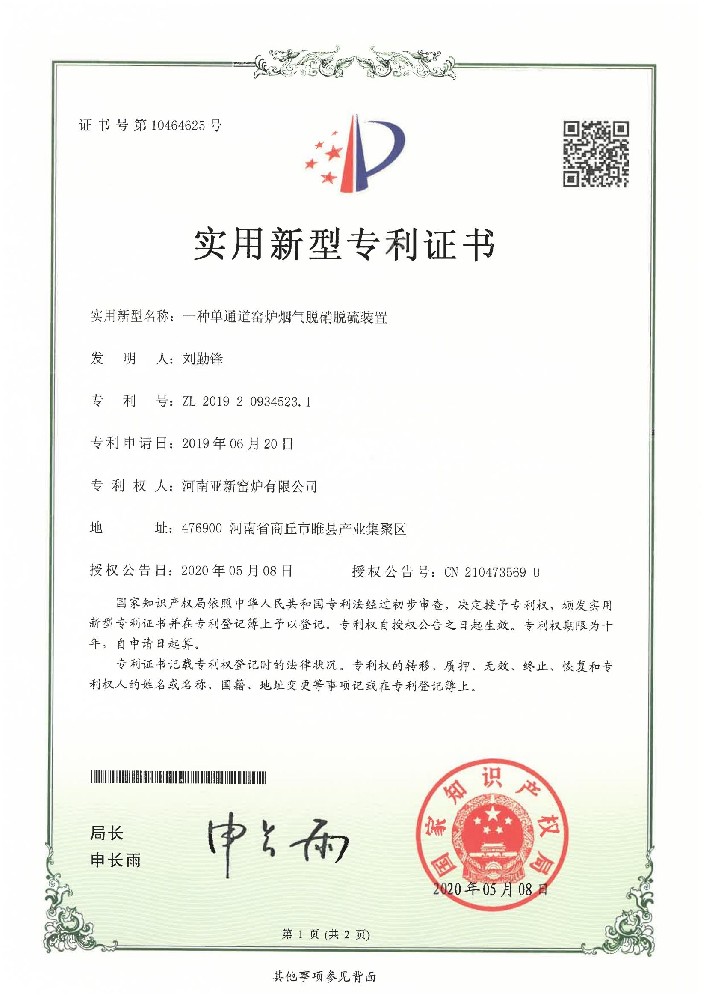 一種單通道窯爐煙氣脫硝脫硫裝置——實(shí)用新型專利
